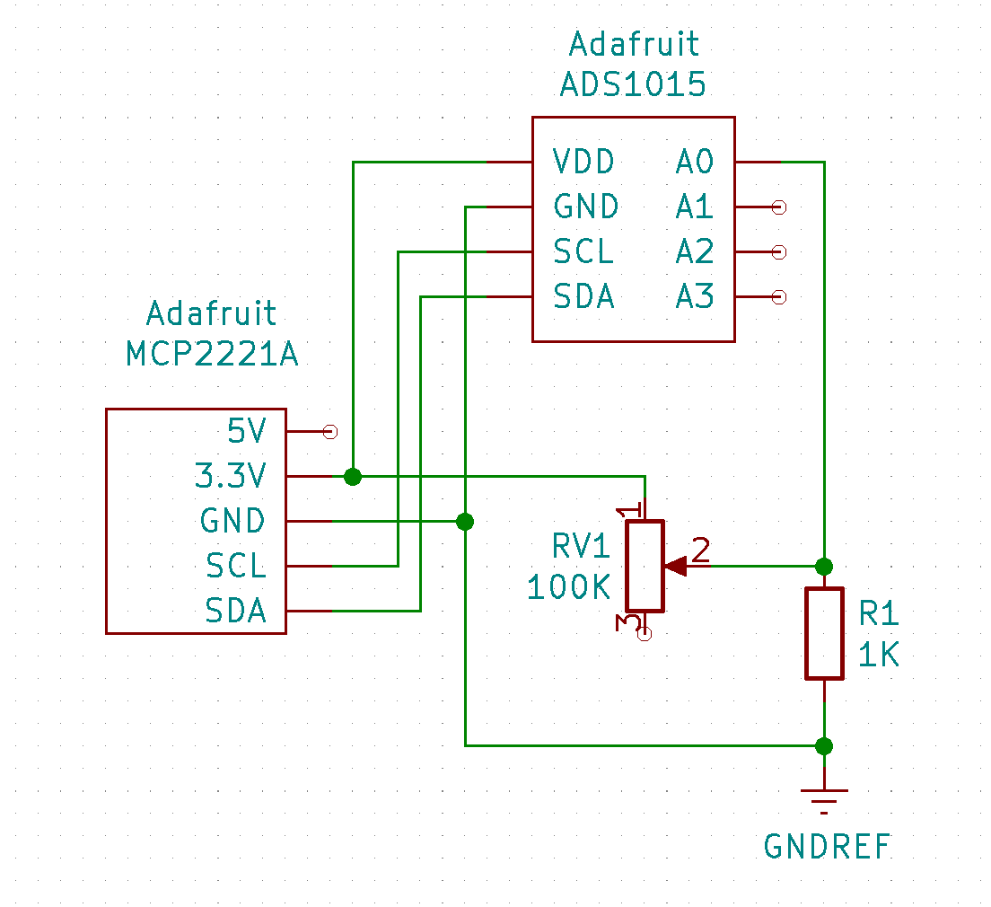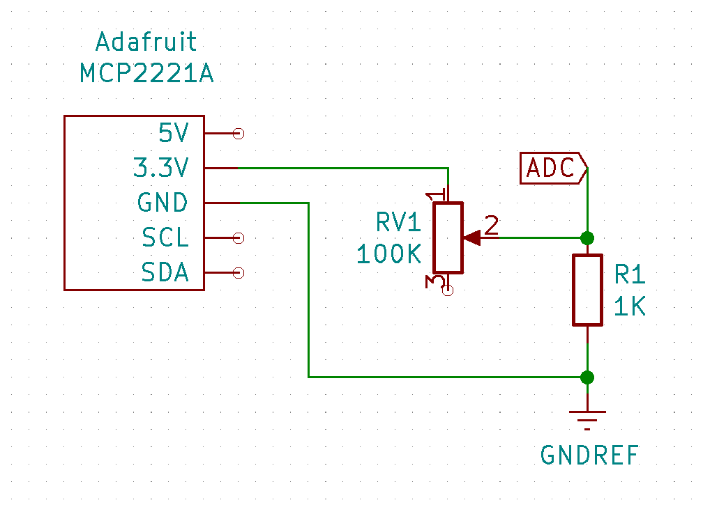 To do the initial testing of the module I will be using a simple voltage divider that runs of the 3.3V line of the Adafruit MCP2221A.