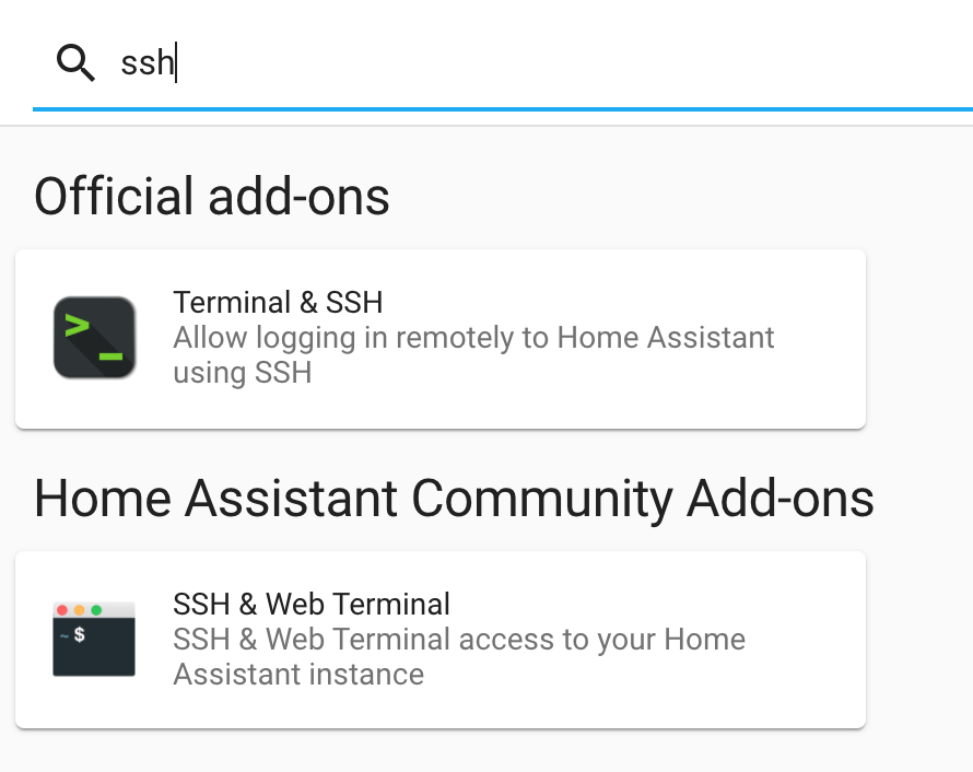 I am installing the Official "Terminal & SSH" add-on because the community one’s security rating is pretty low.