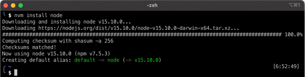 1 comment on “Installing Node.js on macOS Big Sur using nvm”